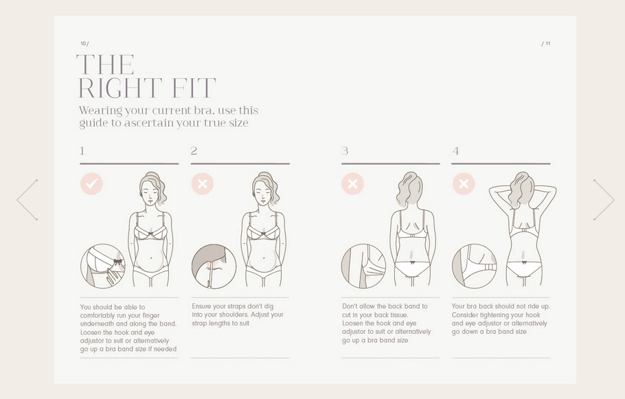 Illustrations for various fitting, sizing, and feature guides. Used on pages and guides on the Cake website, and in books and printed cards accompanying the products/in stores.