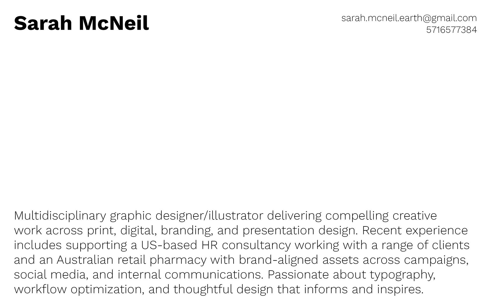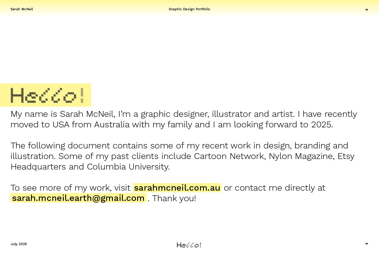 Hello potential employer! My most recent PDF portfolio is below, and you can also download it by