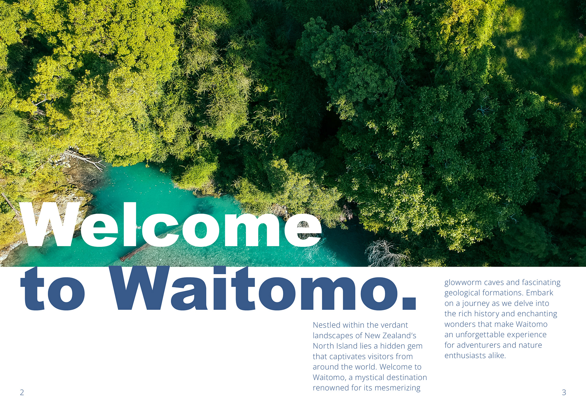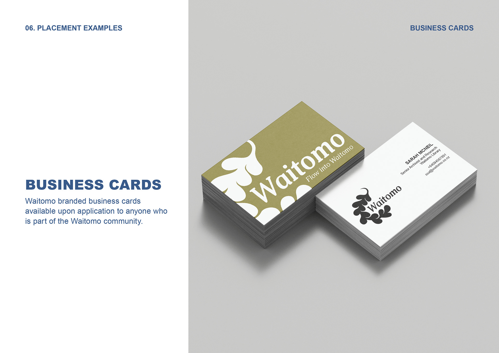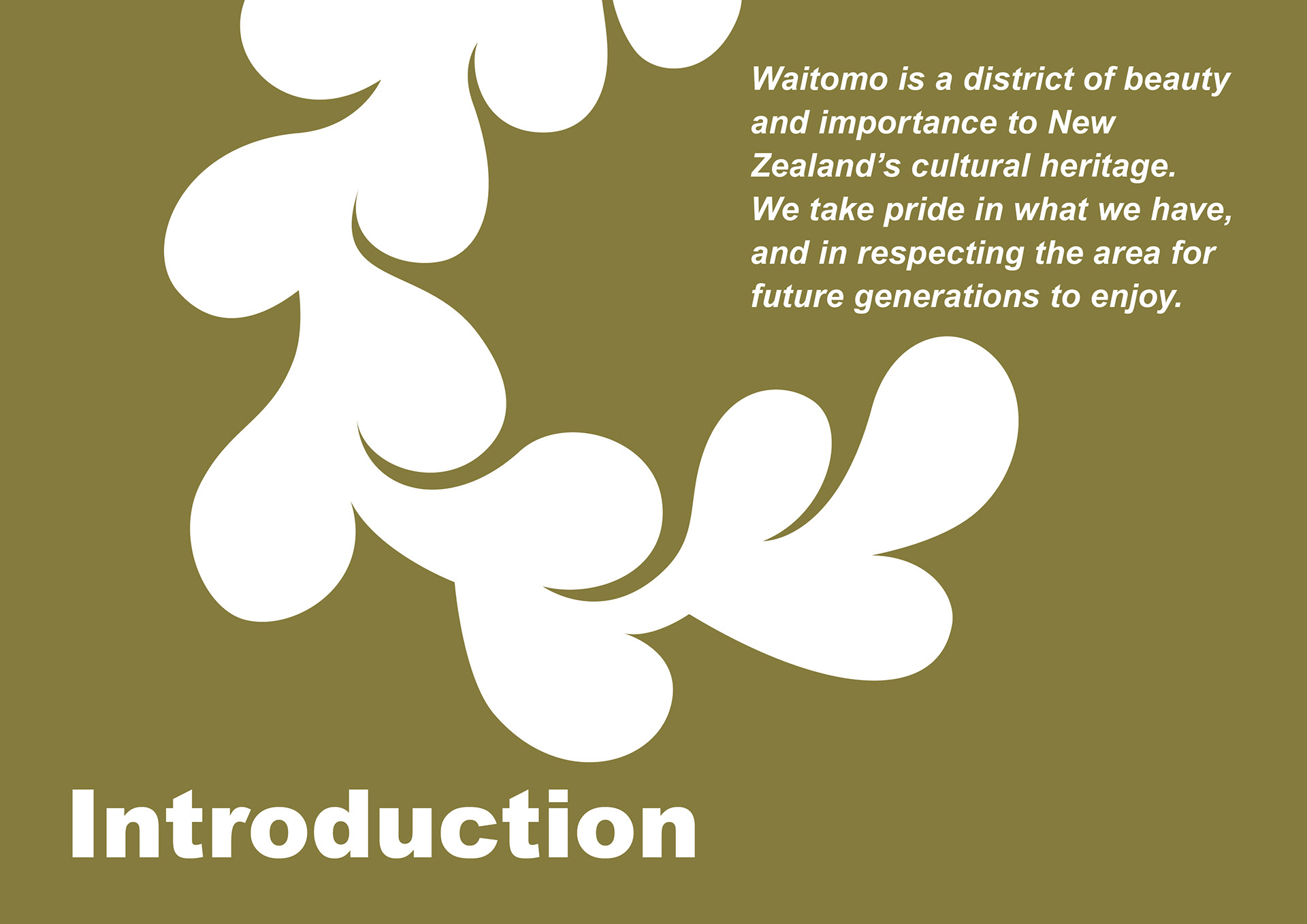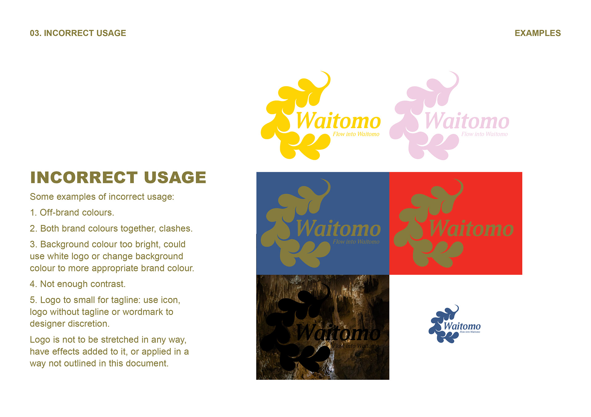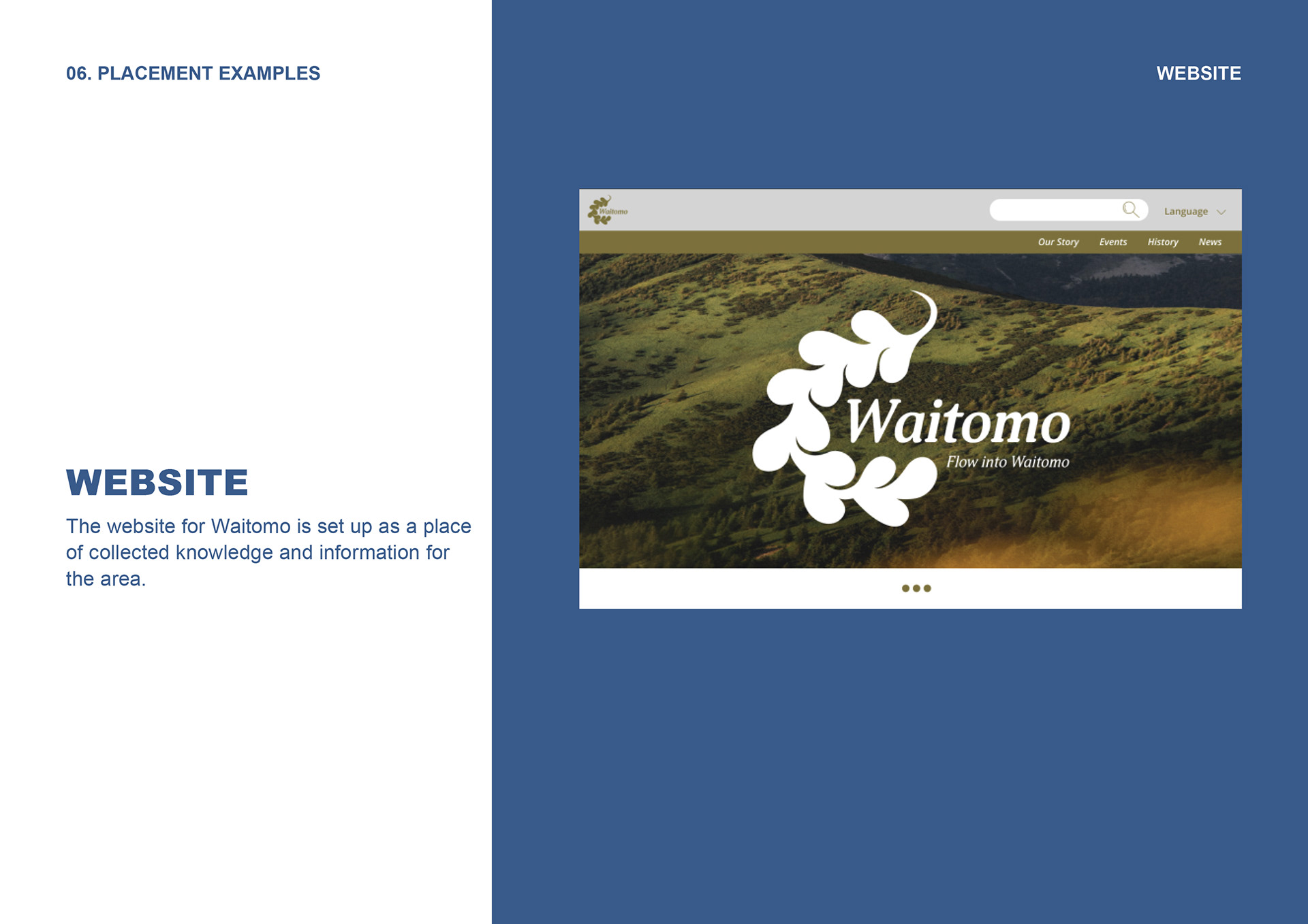 Branding guidelines and logo design for Waitomo, a district in New Zealand.