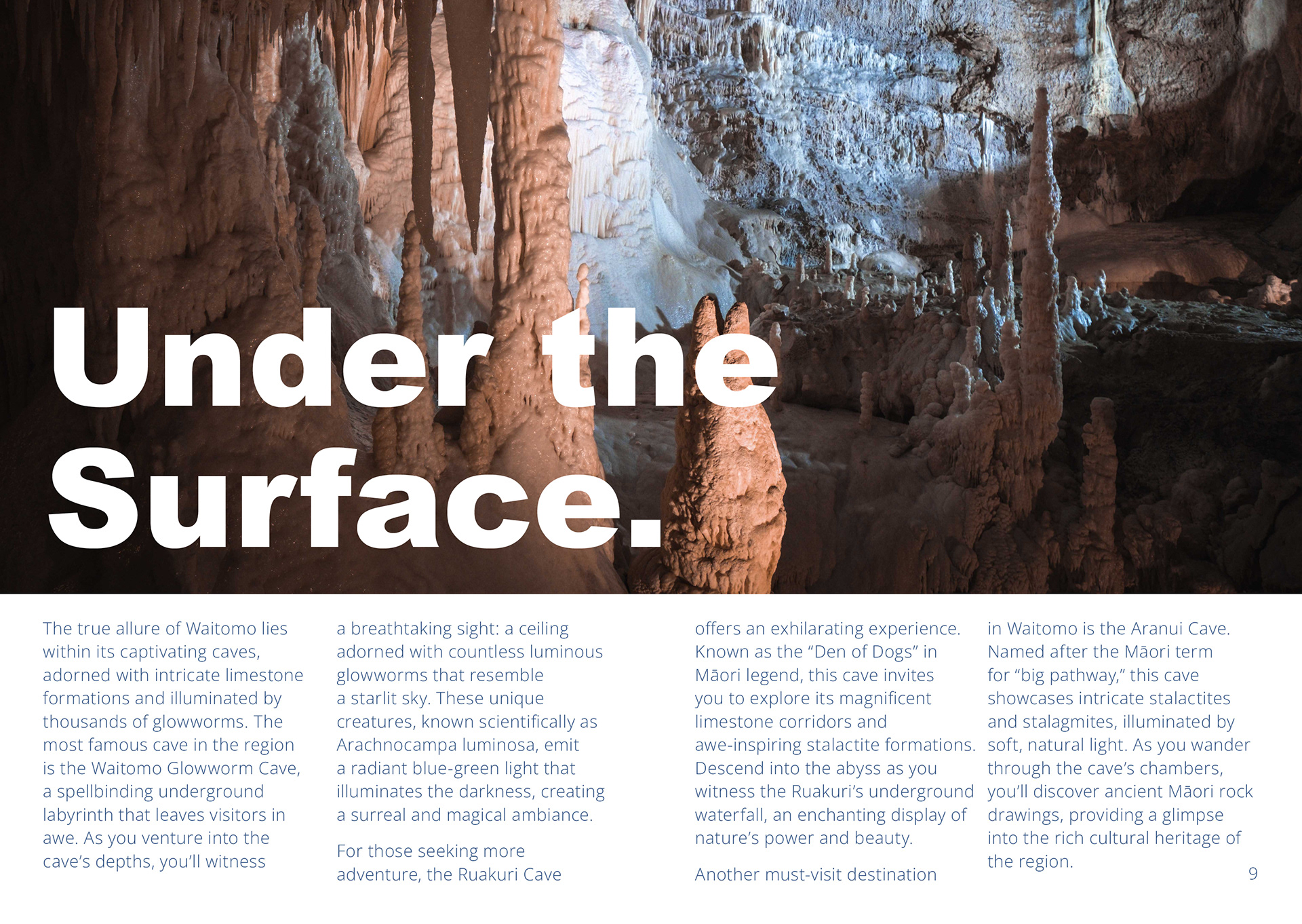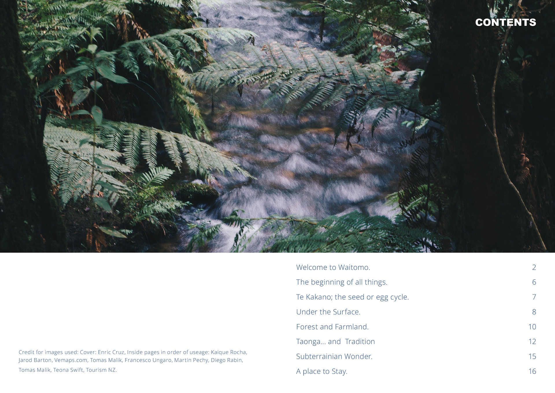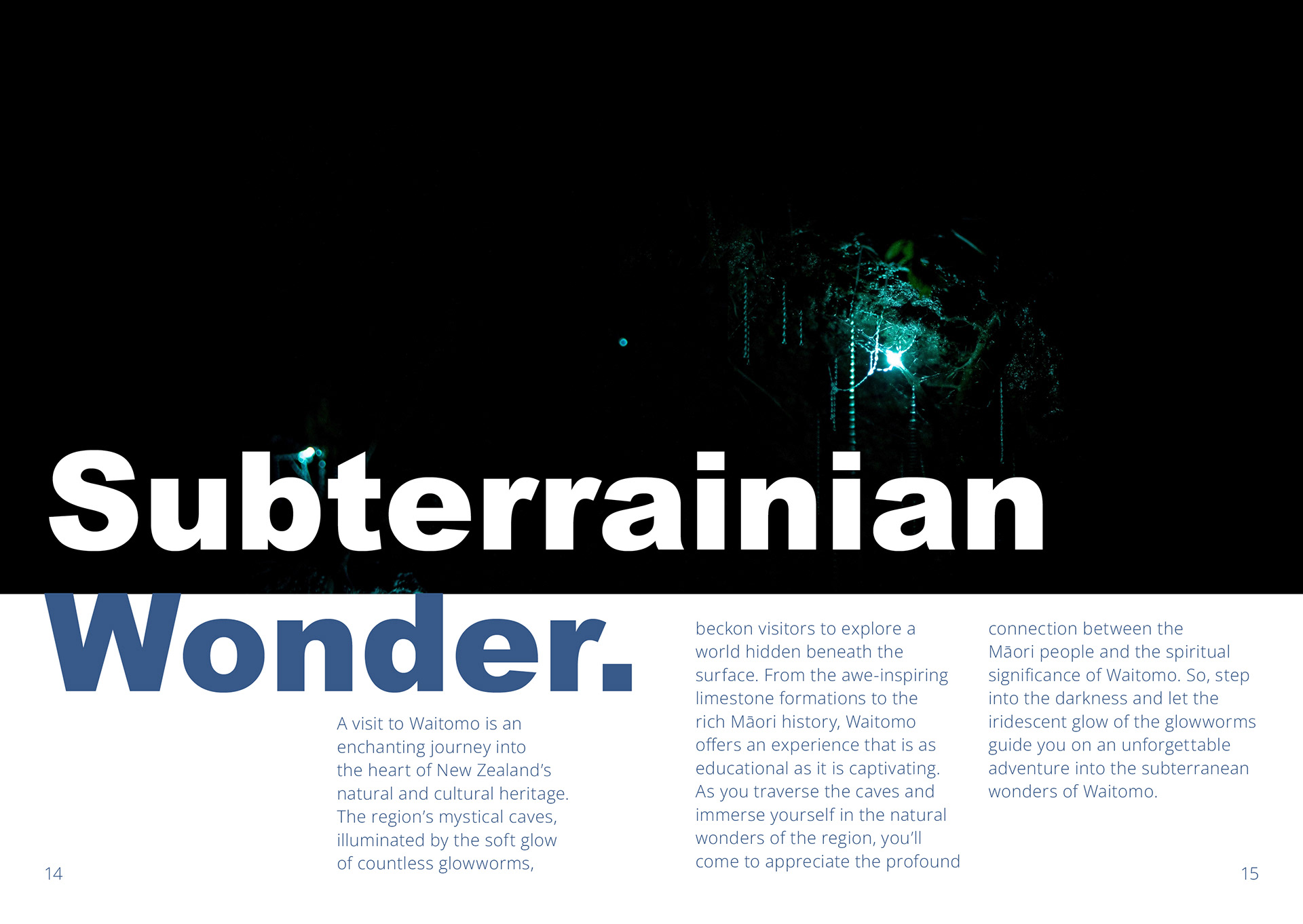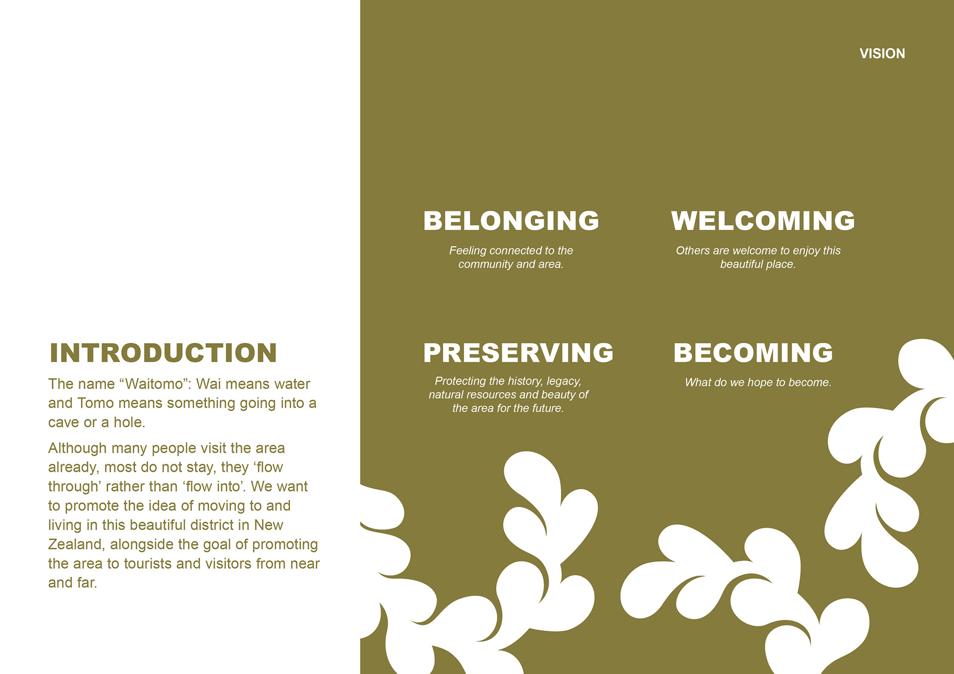 Branding guidelines and logo design for Waitomo, a district in New Zealand.